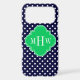 Navy White Polka Dot Emerald Quatrefoil 3 Monogram
