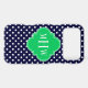 Navy Blue and White Polka Dotted Pattern, Emerald Green Quatrefoil 3 Initial Monogram