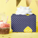 Navy Blue and White Polka Dotted Pattern, Yellow Quatrefoil 3 Initial Monogram