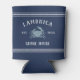 These cool personalised shore house can coolers feature your family name on a navy blue background, with your year established and a blue crab illustration. Rope stripe detailing at the top and bottom completes the design for a rustic nautical look.