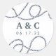 Navy & White | Seaworthy Wedding Monogram Classic Round Sticker