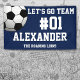 Cheer on your team with this Navy White Soccer Team Banner. Personalise with your athlete's number and name, and the name of the team. You can even change the message. Show off your team spirit this summer.