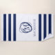 Navy White Stripe Elegant Monogram Name Beach Towel