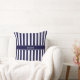 Navy White Stripe Navy Blue Ribbon Name Monogram Cushion