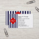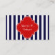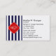 Navy White Stripe Red Quatrefoil 3 Monogram Business Card