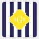 Navy White Stripe Yellow Quatrefoil 3 Monogram Square Sticker