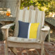 Add a new lease of life to your garden and patio furniture with this Navy, White & Yellow Colour Block Outdoor Throw Pillow in a modern, colour block, vertical stripes design.