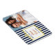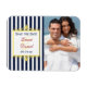 This modern and trendy nautical inspired navy and white stripes photo save the date magnet has yellow scroll accents and red lettering on it, along with a spot for you to add your own digital photo. It matches the wedding invitation shown below. The text is customisable. If you require any additional matching items, or if you would like this design in another colour combination, please email niteowlstudio@gmail.com with your request.