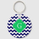 Navy Wht Chevron Emerald Green Quatrefoil Monogram Key Ring