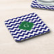 Navy Wht Chevron Forest Green Quatrefoil Monogram Coaster