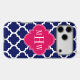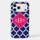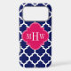 Navy Wht Moroccan #5 Raspberry 3 Initial Monogram
