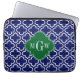 Navy Wht Moroccan #6 Forest Grn 3 Initial Monogram Laptop Sleeve