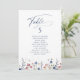 Watercolor floral wildflower field with modern script in navy blue and burgundy red, elegant and sophisticated, great personalized table seating cards for rustic fall wedding, classic garden wedding, and boho winter wedding.