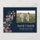 Navy Wildflowers Save The Date with Photo Postcard