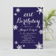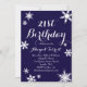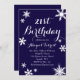 A sprinkling of snowflakes decorates this wintery birthday invitation, on a deep blue background. If additional coordinating items are needed for your event, just contact us at prettyfancyinvites@gmail.com with your request.