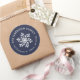Affordable custom printed round return address stickers personalised with your family name and return address. This simple modern holiday design features a white snowflake on a navy blue background. Use the design tools to choose any background colour, edit text fonts and colours or upload your own photos to design your own unique holiday return address labels, envelope seals or gift tag stickers.
