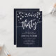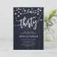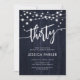30th Birthday Party Invitation. Rustic design with navy wood pattern. Classy invite card featuring fairy string lights and script font. Perfect for a stylish thirtieth bday celebration. Personalize with your own details. Can be customized for any age! Printed Zazzle invitations or instant download digital printable template.