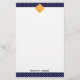 Navy Wt Polka Dot Cantaloupe Quatrefoil 3 Monogram Stationery