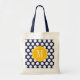 Navy & Yellow Green Big Polka Dots Monogrammed Tote Bag