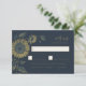 This coordinating RSVP card is part of the elegant sunflower wedding stationery suite. Set against a deep navy background, golden etched-style sunflower illustrations add a rustic yet refined touch. Guests are invited to respond with meal selections and can conveniently RSVP online via the discreet QR code on the back. A thoughtful blend of classic charm and modern functionality. Please note: the gold is a printed colour, not foil or metallic.