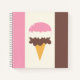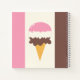 Neapolitan ice cream cone in strawberry, vanilla, and chocolate flavours. Accented with pink, cream, and chocolate Neapolitan vertical stripes on the sides of this custom notebook. It's a sweet design for anyone that loves to eat ice cream!