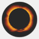 NASA view of a near total solar eclipse shows a bright ring of the orange light of the sun and it’s corona around the dark image of the moon as the partial eclipse maximises.