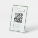 This neatral sage green scan me social media sign is customisable and your business info is easy to add. With one QR code, 3 social media handles and your website it is a full promotional element.