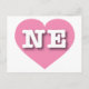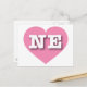 This postcard features a vibrant pink heart containing the bold, white, upper case letters NE, the official abbreviation of Nebraska, the cornhusker state. The reverse side of the postcard is blank, awaiting your customised text or handwritten sentiments.