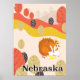 Nebraska USA vintage travel poster. Sleeping Red Fox cartoon vacation poster.