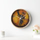 Original Watercolor Nebula wall clock to tell time while pondering the universe. Oranges, yellows and black make a dramatic backdrop for the white hands of the clock.