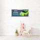 Win birthdays with this custom race car banner. It features an illustration of a stock car style race car with the number 4 on it and the slogan NEED 4 SPEED on the hood making it perfect for 4th birthday parties. The lime green and bright blue car is set against a navy blue background. Coordinating text in white and bright blue is ready to be personalised with your own greeting and name.