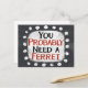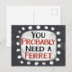 A cute typographic design that says "You Probably Need A Ferret". It sports black and red text over a white accent piece surrounded by white dots, all on a grey background.