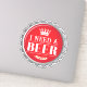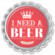 Humourous beer drinker sticker of a red beer bottle cap and the phrase I need a beer!