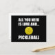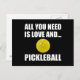 Pickleball teams, coaches, players, leagues, clubs and fans that love the sport joke all you need is love and pickle ball. Check out this funny custom design on tees, shirts, mugs, gifts and apparel.