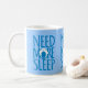 Fun slogan mug reads need more sleep with the o in more replaced by a yawning face. Uniquely designed by Sarah Trett.