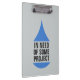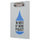 One huge blue drop, holding black text "IN NEED OF SOME PROJECT". Solid background colour can be replaced. Text can be edited. Find more clipboards at KreaturShop.