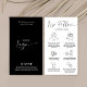 Make sure your clients know how to take care of their lips after a plumping treatment with a custom lip filler aftercare business card - can be used for regular and needles filler. This elegant hyaluron pen lip filler aftercare instructions card includes care icons for each step, calligraphy style font and space for your logo. These black and white beauty salon business cards are the perfect addition to your stationery design.