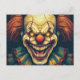 This creative and unique postcard features a scary funhouse circus clown. You can also find several other similar clown postcards in my store under the Halloween Postcards category.