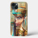 Abstract digital portrait of the Egyptian goddess, Queen Nefertiti, in golds and greens. Wombo Dream AI and artist collaboration.