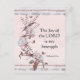 Inspirational quote custom floral postcard features beautiful white and pink watercolor flowers and features Bible Verse Nehemiah 8:10, "The joy of the Lord is my strength."~