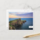 Postcard of a landscape with the iconic Neist Point Lighthouse, built on the cliffs at the western coast of the island of Skye, one of the Hebrides in Scotland, at sunset with a white edge and the text 'Skye'.