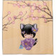 Neko Kokeshi Doll Cat Ears Geisha Girl Yellow Shower Curtain