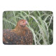 This soft plush high quality rug features Nellie the golden laced wyandotte hen.