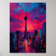 Neo Expressionist Seoul Skyline Vibrant Sunset Poster