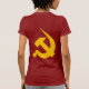 Neo-Thick Chrome Yellow Hammer & Sickle on Front & Back of Women's Red T-Shirt - High Resolution Image- Resize to what ever size you desire - Delete image on one side or the other and the price will lower automatically. This Neo-Thick image comes in 3 shades of yellow, dark yellow, bright yellow, and this one which is chrome yellow, check out other versions if you like this style/colour