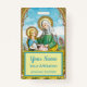 St. Anne—wife of St. Joachim; mother of Mary, the Blessed Virgin; grandmother of Jesus. + St. Anne teaching Mary to read the Scriptures from a book or scroll is, perhaps, *the* most familiar motif to contemporary viewers that features this saint. Statues of St. Anne and Young Mary grace innumerable Catholic churches, chapels, and parochial schools. In this instance, the scroll which St. Anne holds and points to contains a prophecy that pertains directly to Mary (Isaiah 7:14). In Latin, it reads: “Ecce virgo concipiet, et pariet filium, et vocabitur nomen ejus Emmanuel” [Biblia Sacra Vulgata (VULGATE)]. That is: “Behold a virgin shall conceive, and bear a son, and his name shall be called Emmanuel” [Douay-Rheims 1899 American Edition (DRA)]. + Nowhere mentioned in the canonical Gospels, St. Anne is named only in New Testament Apocrypha, specifically the Gospel of James. The Gospel of James purports to give a narrative history of the BVM’s family and early life from her miraculous conception to the birth of Jesus filling in the blanks before the Annunciation. Although rejected for inclusion in the canonical 27-book New Testament, the Gospel of James was an important source for Bl. James of Voragine’s chapter on the early life of Mary in his Golden Legend, the most important and most widely read book after the Bible during the Middle Ages. As such, the stories and the art based on them have come down to us today. The Belgian devotional image reproduced here dates to the late 19th century’s NeoGothic Revival, a movement in ecclesiastical art and architecture that drew on the Middle Ages for its inspiration. + St. Anne is patroness of unmarried women, housewives, women in labour or who want to be pregnant, grandmothers, grandparents, and educators. She is also a patron saint of horseback riders, cabinetmakers, and miners. + Feast: July 26 (with St. Joachim). In the U.S., National Grandparents Day is celebrated by law in September on the first Sunday after Labour Day; but, many religious people also informally honour their grandparents on July 26th. + Image Credit (SAU 29): Antique NeoGothic chromolithograph of St. Anne and Young Mary on a loose page probably from a prayer book originally published by the Socièté de St. Augustin, Bruges, Belgium, late 19th century, from the designer’s private collection of religious ephemera.