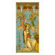 Add your text to the blank back of this versatile hand-out. + In this splendid NeoGothic Swiss devotional print, St. Cecilia of Rome (3rd century) is depicted playing an upright pipe organ. Her long auburn hair hangs loose and tumbles over her shoulders and down her back. She wears a mediaeval-style, cream-coloured gown lined in green over a dark red-orange kirtle. The gown has a square neckline and bell sleeves. + On the print’s left is a potted lily plant. In the religious language of flowers, lilies signify purity. Despite her private vow of virginity, St. Cecilia was forced into an arranged marriage with a pagan named Valerian. The marriage was never consummated. The long and the short of it is that her new husband, having seen an apparition of the angel that guarded his wife’s virtue, converted to Christianity and respected her vow. + Against the aqua background patterned with gold dots and stars, two angels hover in the space above St. Cecilia. Clad in salmon pink, one angel holds an unfurled scroll; clad in green, the other angel plays a portative or hand-held organ. It is said that on her wedding day, St. Cecilia “sang in her heart to the Lord” instead of revelling; hence, her patronage of musicians (especially organists) and singers as represented by the two angels. + The entire scene is enclosed in a NeoGothic architectural framework (only partially visible here). + Epilog: St. Cecilia, her husband St. Valerian, and her brother-in-law St. Tiburtius were all martyred. But, that’s a story for another day! + Feast: November 22 + Image Credit (BNG 02): Antique NeoGothic image of St. Cecilia, originally published in chromolithography by Benziger & Co., Einsiedeln, Switzerland, late 19th-early 20th century, from the designer’s private collection of religious ephemera.