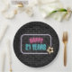 Neon 21st Birthday Marquee On Brick Wall Paper Plate