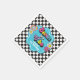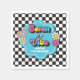 Neon 90's retro Seven is a vibe 7th birthday paper napkins with hearts, daisies, disco ball and chequered background.