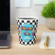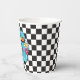 Neon 90's retro Thirteen is a vibe 13th birthday paper cups with hearts, daisies, disco ball and chequered background.